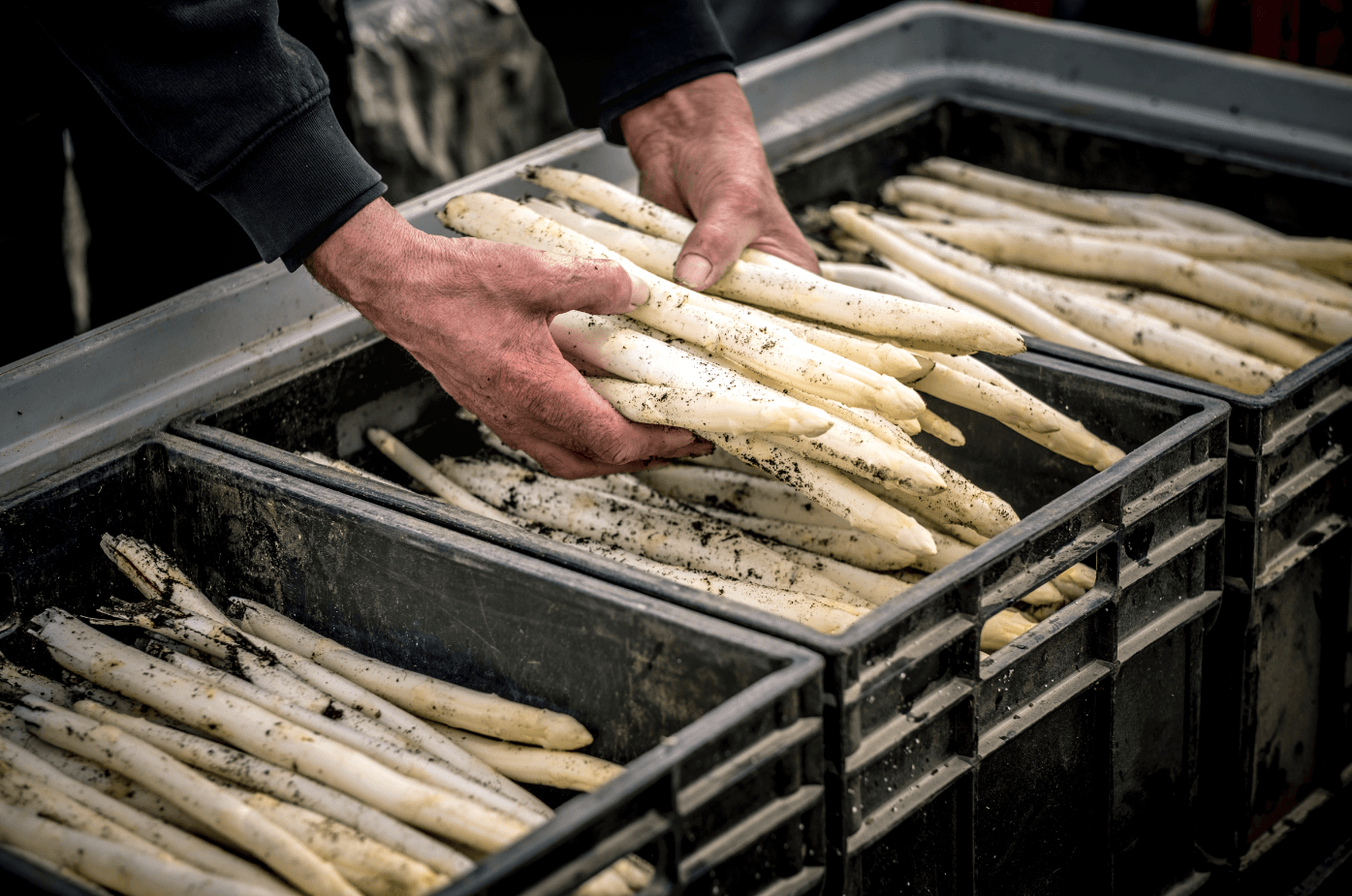 De witte asperge uit volle grond is meestal verkrijgbaar van begin april – als het weer meezit – tot en met 24 juni, Sint-Jansdag. Bart teelt asperges sinds 2016. Daarvoor kweekte hij tomaten. “We moesten een moeilijke keuze maken: ofwel zwaar investeren in een uitbreiding ofwel omschakelen. Gezien er geen opvolging is, kozen we voor de tweede optie.”