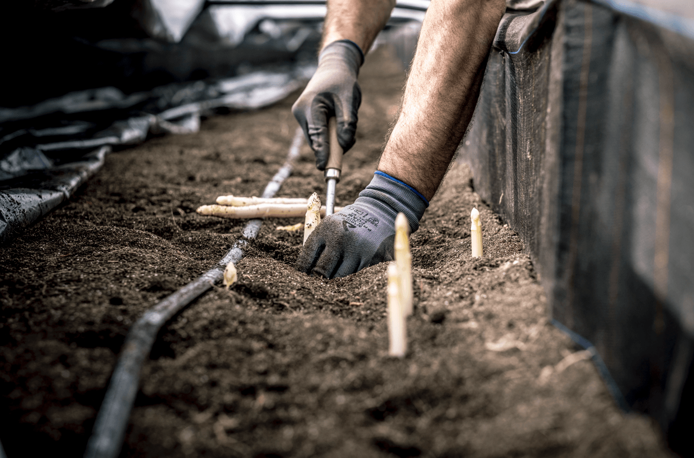 "Typisch aan de aspergeteelt is dat je vier zeer hectische maanden per jaar hebt: van februari, maart tot half juni ongeveer. Dan werken we hier 7 dagen op 7.” Het aspergeseizoen wordt vooral bepaald door de grondtemperatuur. “Vanaf 14 graden beginnen de asperges een beetje te schieten”, vertelt Bart. “De ideale grondtemperatuur is 18 graden. Maar te warm is ook niet goed. Asperges moeten rustig kunnen groeien. Anders verkleuren ze, worden ze krom of krijg je losse koppen.”