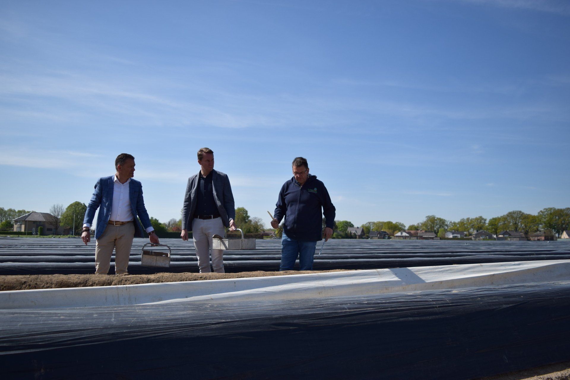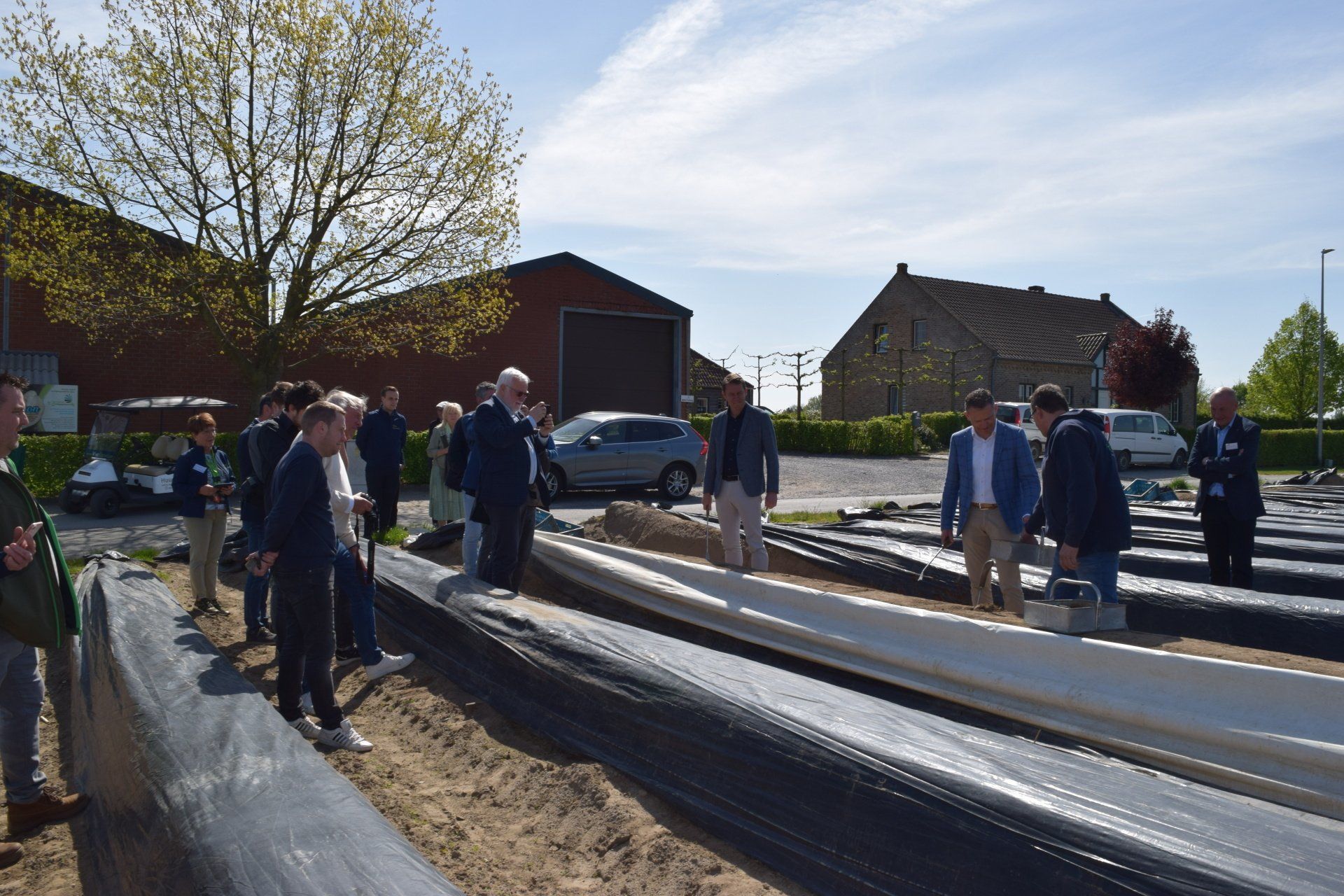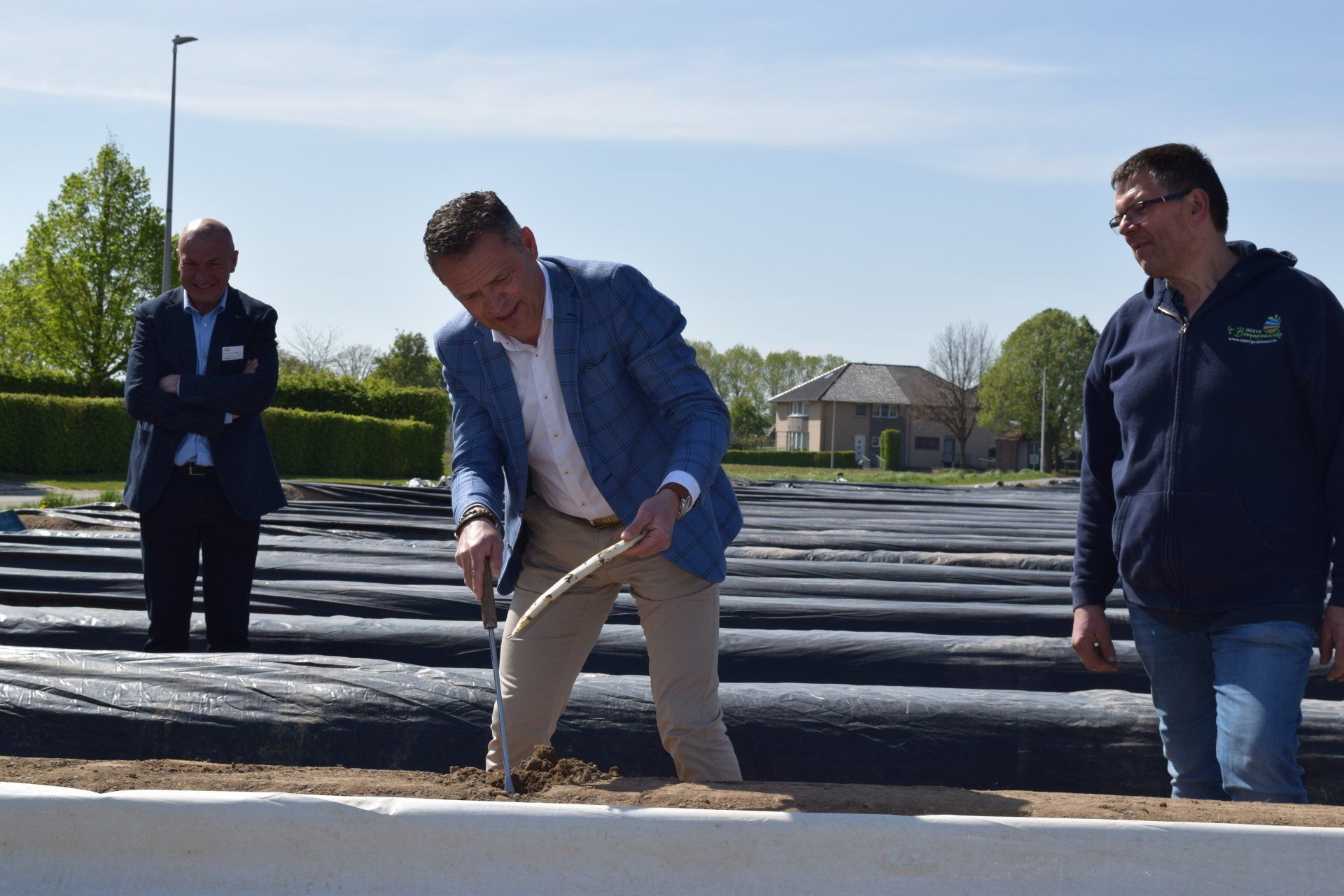 Traditie wil dat wij -LAVA- in naam van de aspergetelers en de Belgische groente- en fruitveilingen, jaarlijks de Officiële Opening van het Asperge(hoog)seizoen organiseren. De symbolische ‘eerste steek’ vindt traditioneel plaats bij een Vlaamse aspergeteler, dit jaar hadden aspergetelers Leo en Carine Henckens-Snijkers uit Kinrooi die eer. Voor deze gelegenheid werden Jo Brouns -burgemeester van Kinrooi- en Lode Ceyssens -voorzitter Boerenbond vanaf 1 mei 2022- uitgenodigd op 21 april 2022. Het hoogseizoen van de Vlaamse asperges start deze week en loopt traditioneel tot 24 juni, het feest van Sint-Jan.